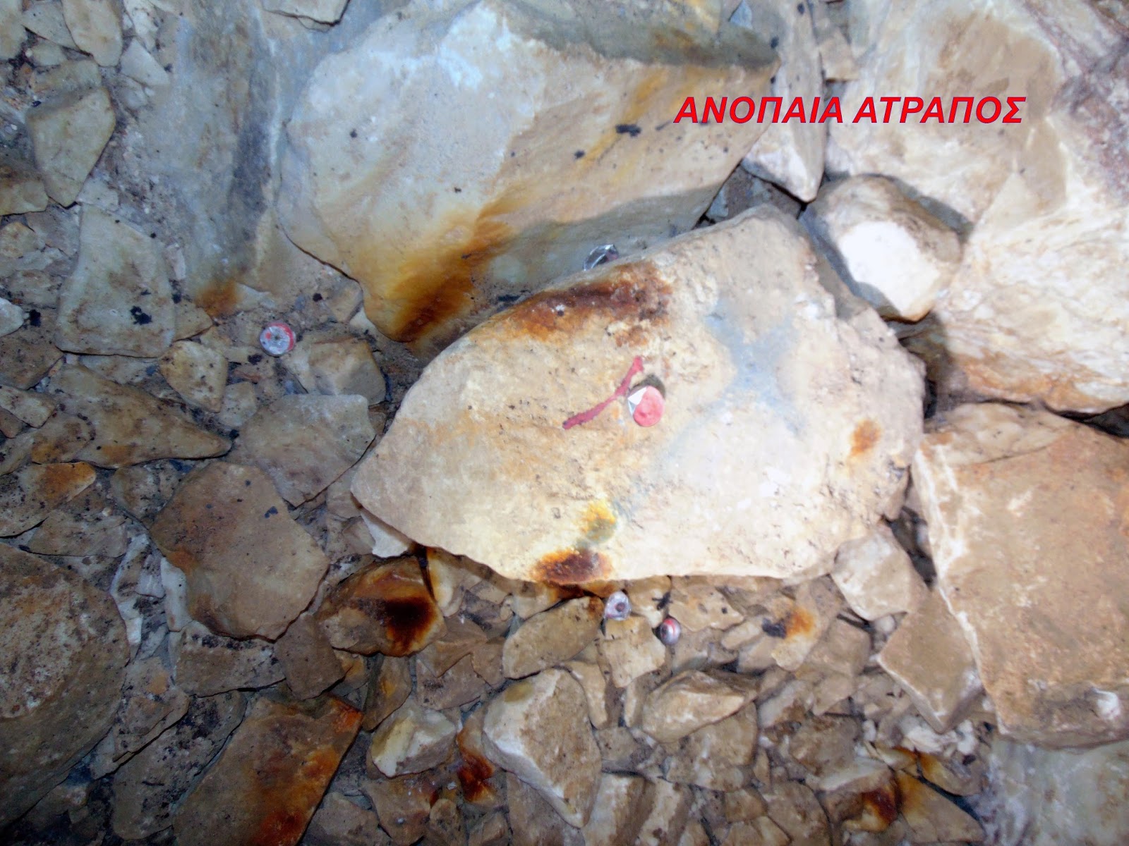ΤΟ ΕΣΩΤΕΡΙΚΟ ΣΗΡΑΓΓΑΣ ΠΛΗΣΙΟΝ ΤΟΥ ΣΠΗΛΑΙΟΥ. ΤΑ ΣΗΜΑΔΙΑ ΚΑΤΑΡΡΕΥΣΗΣ ΕΙΝΑΙ ΟΡΑΤΑ