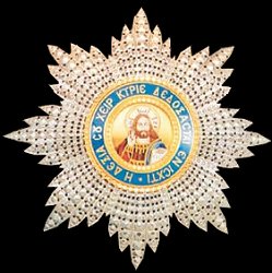 Ο Αστέρας του Τάγματος συνοδεύει μόνο τα διάσημα του Μεγαλόσταυρου, όπου το πλάτος του είναι 90 χιλ. και του Ανώτερου Ταξιάρχη με πλάτος τα 70 χιλ. Αμφότεροι φέρουν οκτώ ακτίνες και στο κέντρο την εικόνα του Σωτήρα. Οι πρώτοι αστέρες ήταν κεντητοί. Αργότερα επεκράτησαν μεταλλικοί, κατασκευασμένοι από άργυρο, όπως ισχύει μέχρι και σήμερα. Η ταινία που συνοδεύει το διάσημο των Μεγαλοσταύρων του τάγματος είναι γαλάζια, πλάτους 10 εκατοστά, με λευκές στενές λωρίδες κατά μήκος των άκρων, πλάτους 8 χιλ έκαστη.