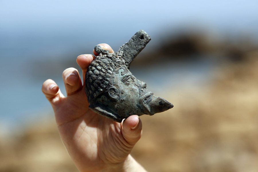 Οι Ισραηλινοί Ραν Φάινσταϊν και Όφερ Ραάναν ανακάλυψαν τυχαία μπρούτζινα αντικείμενα σε κατάδυση τους τον Απρίλιο, ανακοίνωσε η Υπηρεσία Αρχαιοτήτων.