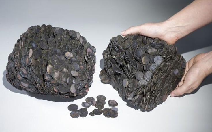 Ενωμένα τα μεν με τα δε, τα νομίσματα είχαν πάρει τη μορφή κεραμικής που τα περικλείνει. Σύμφωνα με τον Τζέικομπ Σαρβίτ, διευθυντή της θαλάσσιας μονάδας της Υπηρεσίας Αρχαιοτήτων, φαίνεται πως το πλοίο εγκλωβίστηκε σε καταιγίδα κατά την είσοδό του στο λιμάνι.