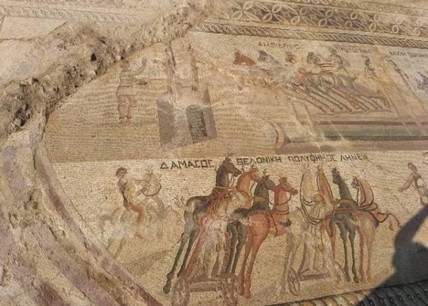 Κατά τη φετινή έρευνα αποκαλύφθηκε ολόκληρη η παράσταση του ιπποδρόμου. Φάνηκε ότι πρόκειται για τέσσερις διαφορετικές φάσεις ενός αγώνα με τέσσερα τέθριππα στον ιππόδρομο. Τα δύο ονόματα που συνοδεύουν κάθε τέθριππο αντιστοιχούν το ένα στον ηνίοχο και το άλλο σε ένα από τα άλογα. Πάνω στον εύριπο εμφανίστηκε, εκτός από τους ναΐσκους και του κίονες με τα δελφίνια από τα οποία ρέει νερό αντίστοιχα με εκείνα που βρέθηκαν στο τμήμα του ψηφιδωτού που αποκαλύφθηκε το 2015, ο μηχανισμός με τον οποίο μετρούσαν τους γύρους, που ολοκληρώνονταν κατά τον αγώνα.