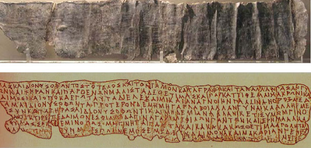 Δένω με μάγια γραπτά[2] την τελετή και το γάμο της Θετίμας[3] και του Διονυσοφώντος και όλων των άλλων[4] γυναικών και χηρών και παρθένων, ιδιαίτερα όμως της Θετίμας, και τα εμπιστεύομαι στον Μάκρωνα[5] και τους άλλους δαίμονες.[6] Κι όταν εγώ τα ξεθάψω, τα ξετυλίξω και τα διαβάσω πάλι, τότε να παντρευτεί ο Διονυσοφών, όχι νωρίτερα.[7] Και να μην πάρει άλλη γυναίκα, παρά εμένα, και εγώ να γεράσω μαζί με τον Διονυσοφώντα και καμιά άλλη. Γίνομαι ικέτης σας! Την φίλη σας οικτίρετε φίλοι δαίμονες, γιατί είμαι ταπεινή[8] και στερημένη απ’ όλους τους φίλους. Αλλά προσέξτε για χάρη μου[9] ώστε να μην γίνει αυτός ο γάμος και η κακιά Θετίμα να χαθεί με τρόπο κακό…