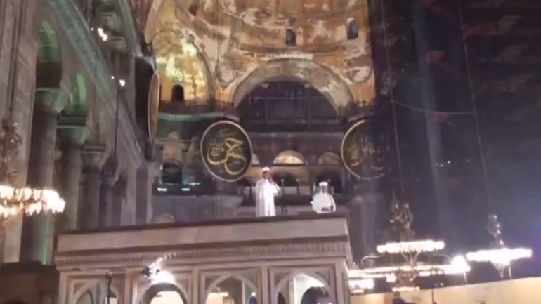 Νέα τουρκική πρόκληση σε περίοδο Ραμαζανιού αποτελεί η ανάγνωση του Κορανίου και η τέλεση προσευχής εντός της Αγίας Σοφίας, παρουσία του επικεφαλής της Διεύθυνσης Θρησκευτικών Υποθέσεων της τουρκικής πρωθυπουργίας, η οποία μεταδόθηκε τηλεοπτικά από την κρατική τηλεόραση της Τουρκίας.