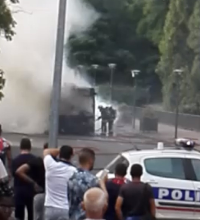 Εικόνες που έχουν ανεβάσει αυτόπτες μάρτυρες στα social media δείχνουν ένα όχημα κατεστραμμένα ολοσχερώς από τις φλόγες, από το οποίο βγαίνουν πυκνοί καπνοί, ενώ κόσμος απομακρύνεται φοβισμένος.