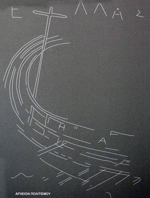 Αλλά στην εν λόγω παράσταση υπάρχει κάτι ΜΟΝΑΔΙΚΟ: Η τριήρης φέρει εγχάρακτα και το όνομά της. Και ακόμη πιο μοναδικό είναι, ότι αυτή λέγεται… ΕΛΛΑΣ…