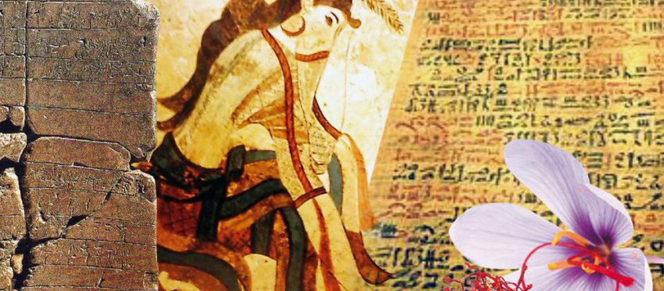 Τοιχογραφία από το Ακρωτήρι Θήρας που εικονίζει καθισμένη γυναικεία μορφή. Έχει τραυματιστεί στην πατούσα και από το αίμα που έτρεξε κοκκίνισε ο κρόκος.