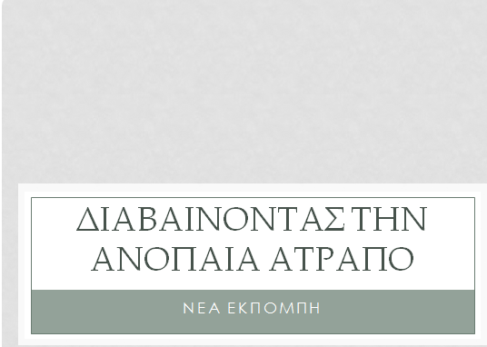 ANAΓΓΕΛΙΑ ΝΕΑΣ ΕΚΠΟΜΠΗΣ 12/01/2019 23:15 Μ.Μ ΔΙΑΒΑΙΝΟΝΤΑΣ ΤΗΝ ΑΝΟΠΑΙΑ ΑΤΡΑΠΟ : ΒΡΥΚΟΛΑΚΕΣ ΣΤΟΝ ΕΛΛΗΝΙΚΟ ΧΩΡΟ