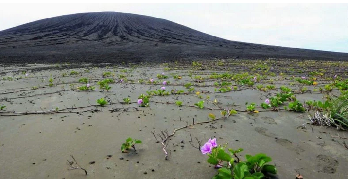 Οι επιστήμονες ανέφεραν, επίσης, την ύπαρξη βλάστησης στο νησί παρά το μαύρο χαλίκι που υπάρχει ακόμα από την έκρηξη το ηφαίστειου. Εκτός από τη λάσπη, οι ερευνητές βρήκαν βλάστηση στο νησί και ακόμη και μερικά ζώα, συμπεριλαμβανομένης μιας κουκουβάγιας και εκατοντάδων φουντουκιών.