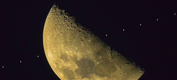 Η πορεία του Διεθνούς Διαστημικού Σταθμού μπροστά από τη Σελήνη, στην timelapse φωτογραφία που έβγαλε ο Κεν Λόουσον